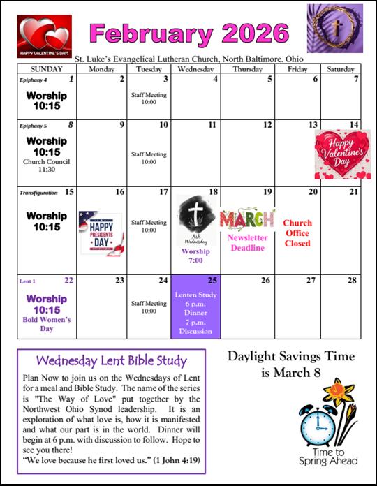 North Baltimore, Ohio, is located west of I75 north of Findlay. St. Luke’s Lutheran Church in located just west of downtown North Baltimore, off Broadway on N. Second Street.